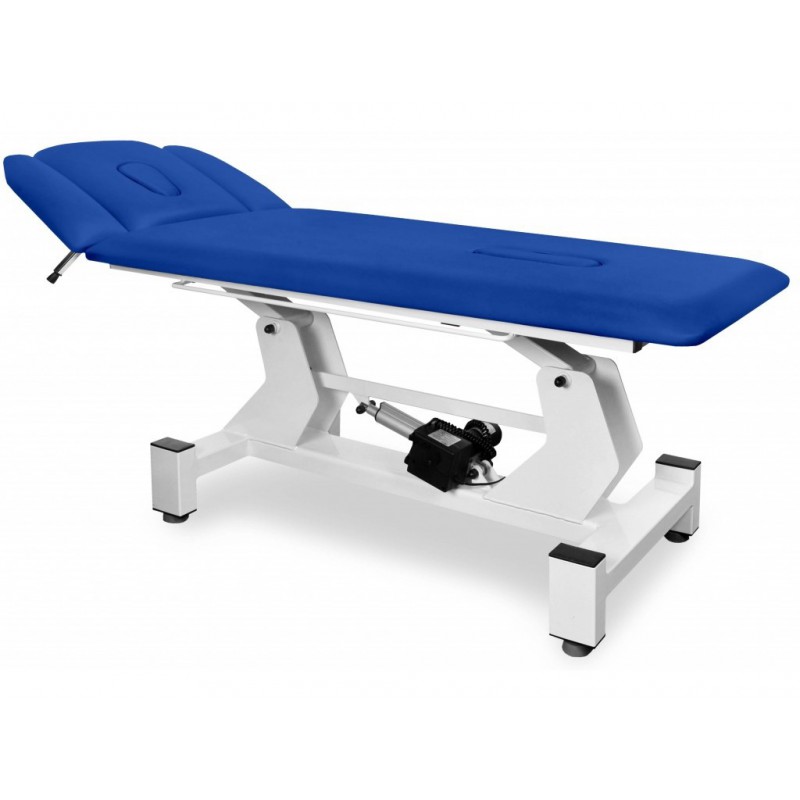 NSR 2 to model stacjonarnego stołu rehabilitacyjnego. Posiada dwuczęściowy blat oraz możliwość regulacji zarówno wysokości jak i ułożenia podgłówka. Wysokość stołu regulowana jest elektrycznie, a podgłówek posiada sprężynę gazową. Dzięki regulacji wysokości, otworom w podgłówku i głównej części stołu oraz uchwytom na pasy do stabilizacji gwarantuje ergonomiczną i wygodną pracę terapeuty. Biały stelaż stołu rehabilitacyjnego NSR 2 jest podstawowym elementem konstrukcji stołu, który może być dowolnie wystylizowany poprzez dobór dowolnego koloru tapicerki skóropodobnej.