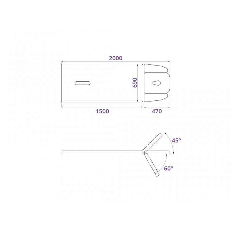 Stół rehabilitacyjny EVO 2 E jest dwuczęściowym modelem stacjonarnego stołu rehabilitacyjnego z otworami w podgłówku oraz w leżu.