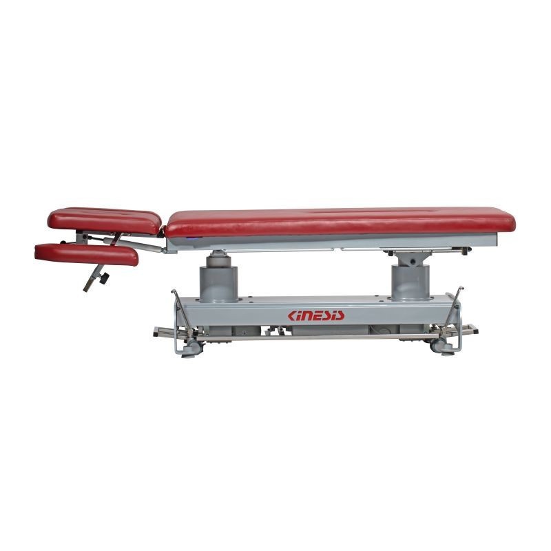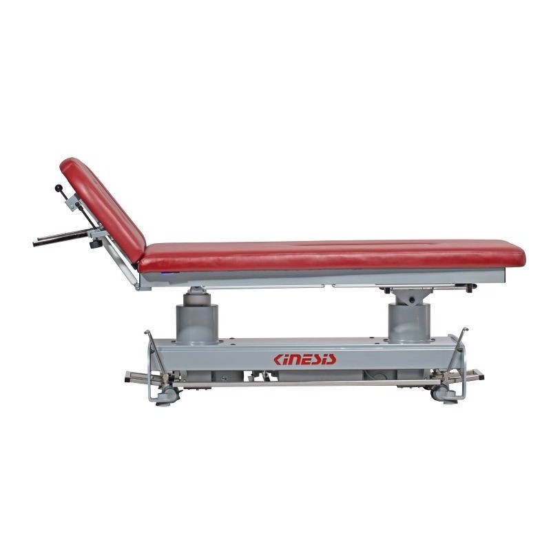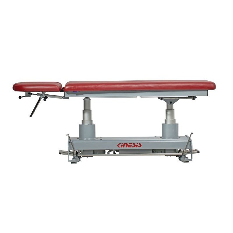 Stół rehabilitacyjny PERFECT II. Składa się z 2 części. Wysokość leżyska możemy regulować elektrycznie, dzięki ramie wokół stołu.