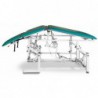 SR 3 F 3 E to stół rehabilitacyjny dla najbardziej wymagających terapeutów. Możliwość regulacji wysokości i kąta nachylenia poszczególnych części leża za pomocą siłownika elektrycznego. Istnieje również możliwość regulacji poszczególnych części leża. Regulacja tylnej części leża do pozycji fotela.