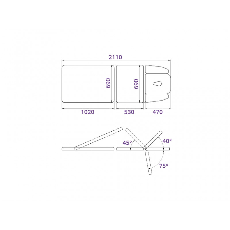 • Regulacja kąta nachylenia zagłówka: -75° - 40°