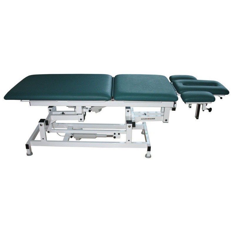Stół rehabilitacyjny łamany z elektryczną regulacją wysokości leżyska i uchylnym wezgłowiem. Przeznaczony jest głównie do terapii manualnej, ćwiczeń kinezyterapeutycznych wymagających ułożenia ciała pod kątem przy ćwiczeniach usprawniających zespołu bólowego kręgosłupa i pozycjach drenażowych. Stół zmontowany jest na dużej stabilnej konstrukcji, która charakteryzuje się długą żywotnością, stabilnością oraz solidnością wykonania.