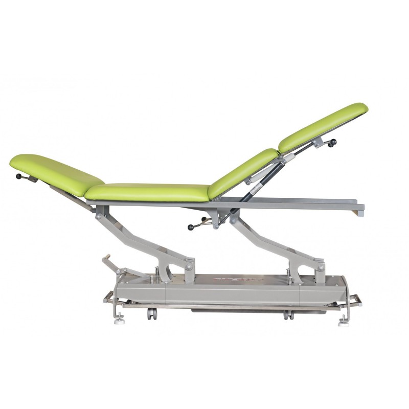 Stół rehabilitacyjny PROFI 4 Plus znajduje zastosowanie w gabinetach kosmetycznych, masażu i w gabinetach fizjoterapii. Charakteryzuje się wzmocnioną konstrukcją stalową. Leżysko składa się z czterech segmentów. Pozwala to ułożyć pacjenta w pozycji „krzesełkowej”. Zagłówek stołu regulowany jest płynnie za pomocą sprężyny gazowej. Podział i łamanie leżyska za pomocą sprężyn gazowych. Stół, dzięki jego solidnemu wykonaniu i wzmocnionej ramie, bez wątpienia sprosta wymaganiom każdego fizjoterapeuty. Tapicerka V line z systemem Easy Clean oraz zwiększoną odpornością na ścieranie stanowi standardowe wyposażenie stołu PROFI 4 Plus.