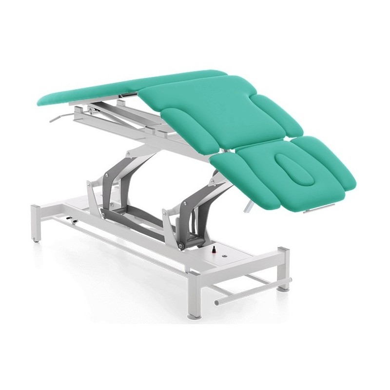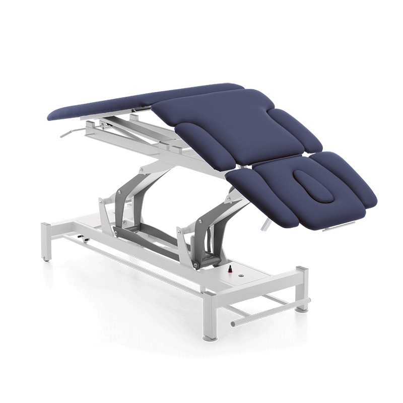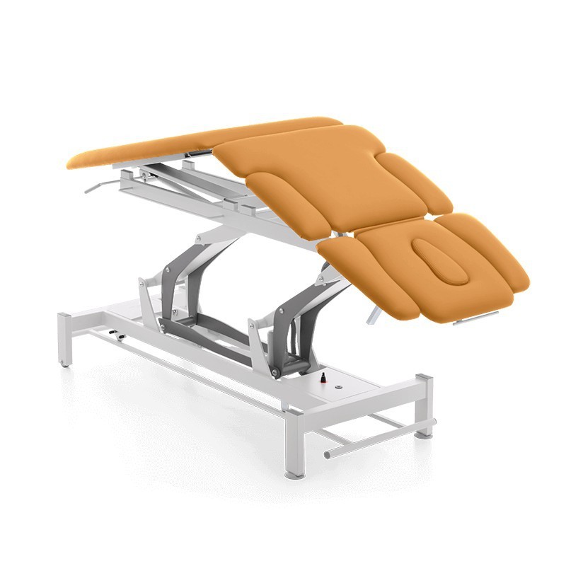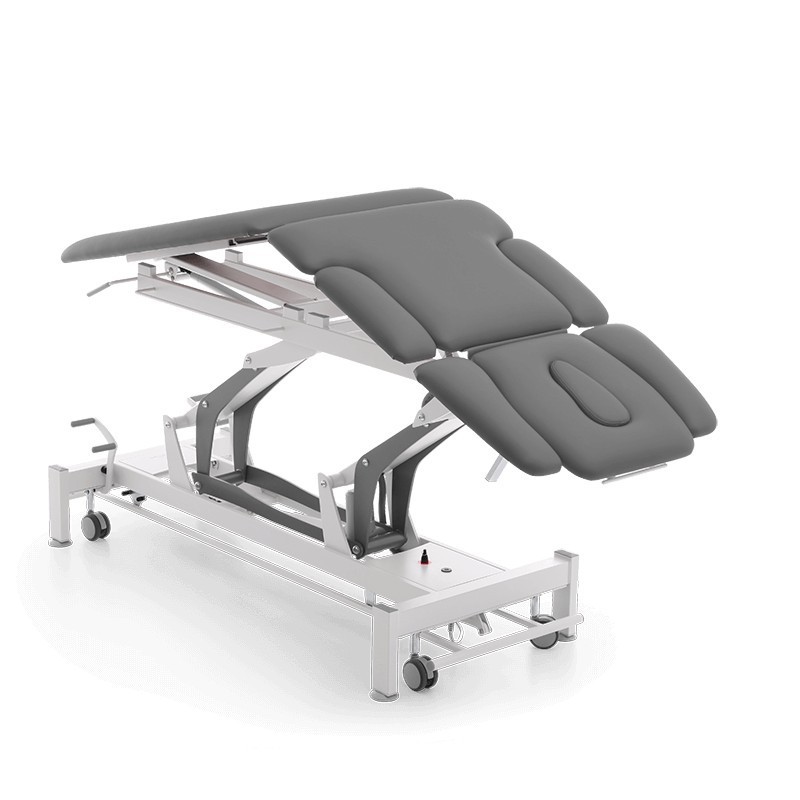 Stół do masażu i rehabilitacji - siedmiosekcyjny z Pivotem (Terapeuta M-P7.F0) to profesjonalny i funkcjonalnie zaprojektowany stół z elektryczną regulacją wysokości z wykorzystaniem wygodnej ramy wokół podstawy. Stół M-P7.F0 składa się z 2 małych kółek i 2 antypoślizgowych gumowych stopek, funkcji Pivota sterowanego elektrycznie.