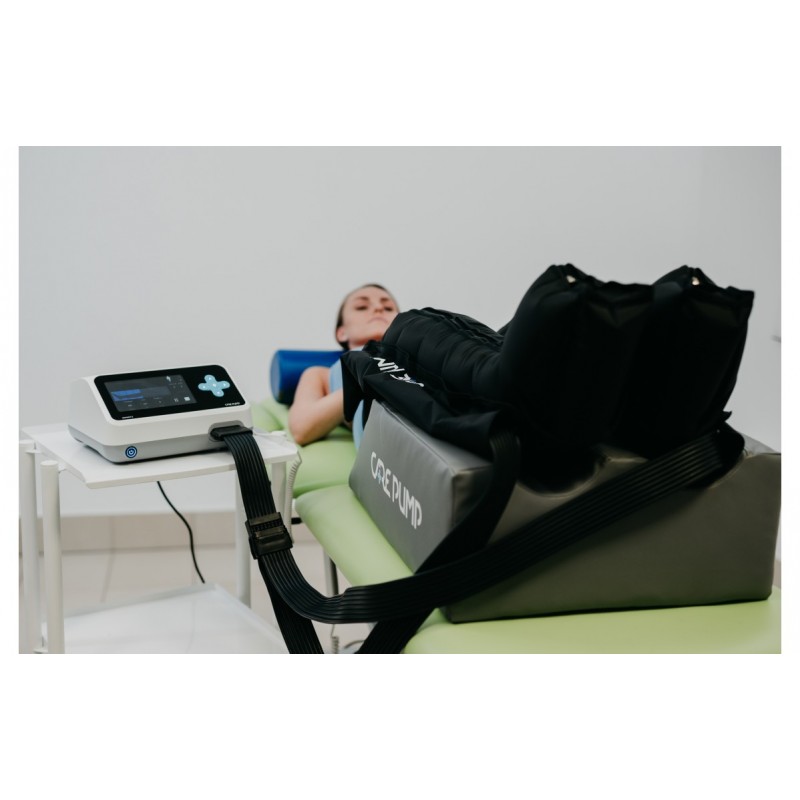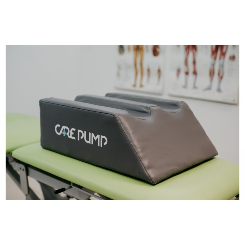 Kształtka zapewniająca odpowiednią pozycję ciała przy wykonywaniu zabiegu przerywanej kompresji pneumatycznej na kończynach dolnych.