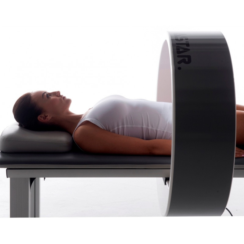 Aparat PhysioMG 827 służy do realizacji zabiegów terapeutycznych polem magnetycznym niskiej częstotliwości. Posiada dwa niezależne kanały, umożliwiające terapię dwóch obszarów jednocześnie lub wykorzystanie aparatu do terapii dwóch pacjentów w jednym czasie. W urządzeniu znajdziemy szereg wbudowanych programów terapeutycznych z dodatkową wizualizacją 3D. Mamy także możliwość manualnego ustawienia parametrów zabiegowych. Aparat jest kompatybilny z najnowszym aplikatorem szpulowym CS75. Zestaw zaopatrzony jest także w leżankę dzięki czemu posiadamy wszystkie niezbędne elementy do przeprowadzenia zabiegu magnetoterapii.