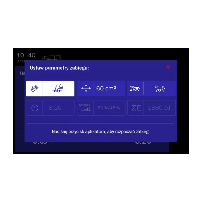 • automatyczne przeliczanie czasu zabiegu na podstawie pola zabiegowego