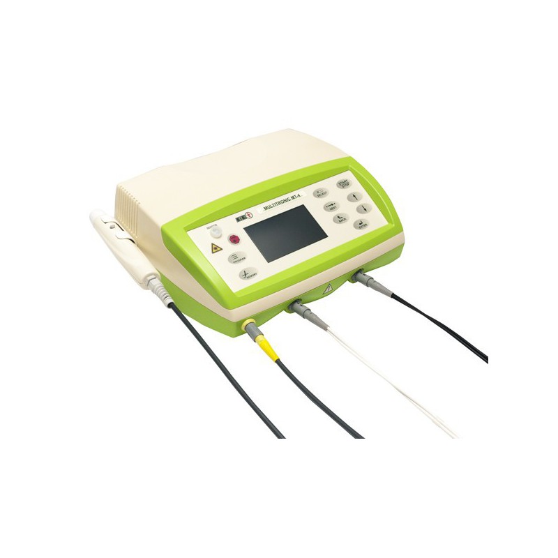 Aparat Multitronic MT-4 to dwukanałowy aparat do terapii prądem i stymulacji laserowej. Elektroterapia i laseroterapia to jedne z podstawowych zabiegów z zakresu fizykoterapii. Prądy o różnym ukształtowaniu impulsów oraz promieniowanie laserowe są najczęściej stosowane w fizjoterapii oraz w medycynie estetycznej. Dwukanałowy aparat pozwala na wykonanie dwóch zabiegów jednocześnie lub wykonanie terapii dwóch pacjentów w jednym czasie. Umożliwia także realizację zlecenia na terapię skojarzoną.