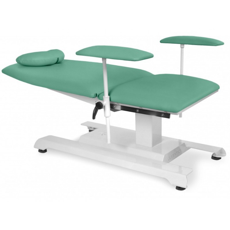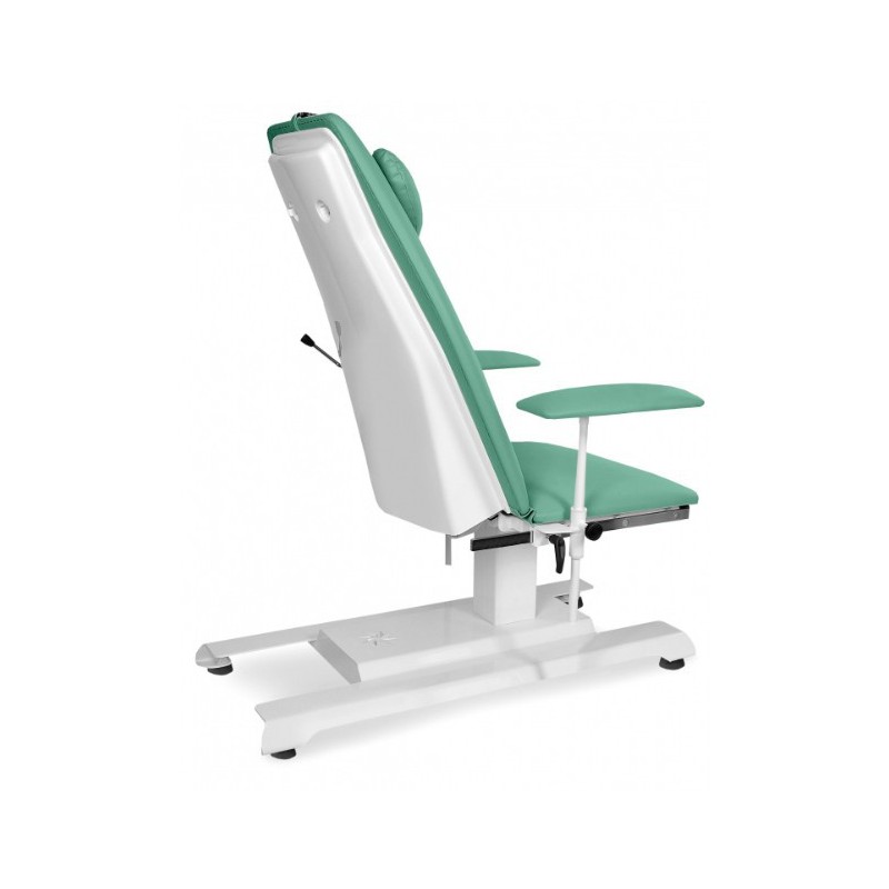 Fotel zabiegowy JFZ 1 Fotel ten stosowany jest w ośrodkach zdrowia, gabinetach lekarskich oraz zabiegowych. Idealny do przeprowadzania badań oraz zabiegów pacjentów m.in: dializ, pobierania krwi, badań okulistycznych, laryngologicznych. Konstrukcja wykonana z pokrytych farbą proszkową profili stalowych, dzięki czemu jest on stabilny i wytrzymały. Oparcie regulowane jest za pomocą sprężyn gazowych. Podłokietniki również regulowane. Tapicerka skóropodobna, bezszwowa, w kolorze do wyboru.