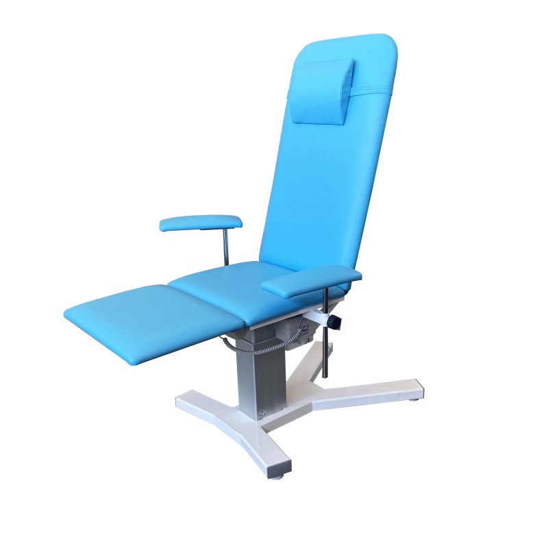 W skład urządzenia wchodzi wygodny podgłówek w formie półwałka. Fotel zabiegowy wykorzystywany jest w gabinetach zabiegowych i lekarskich, ośrodkach zdrowia, szpitalach oraz przychodniach. Uchwyt na kroplówkę można dokupić jako opcję dodatkową.