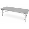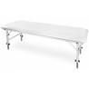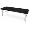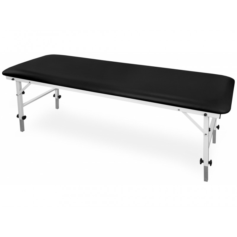 Kozetka MONA posiada prostą i stabilną konstrukcję, wykonaną ze stali pokrytej farbą proszkową. Blat obszyty jest materiałem skóropodobnym. Owalna linia na brzegach kozetki nadaje jej eleganckiego wyglądu. Nogi w kozetce można złożyć lub rozłożyć, co ułatwia transport.