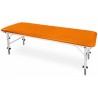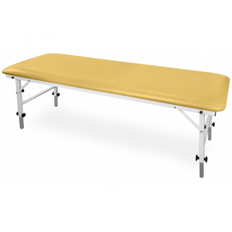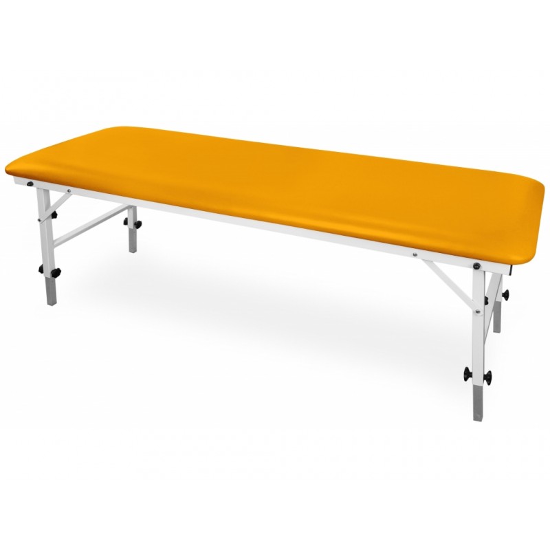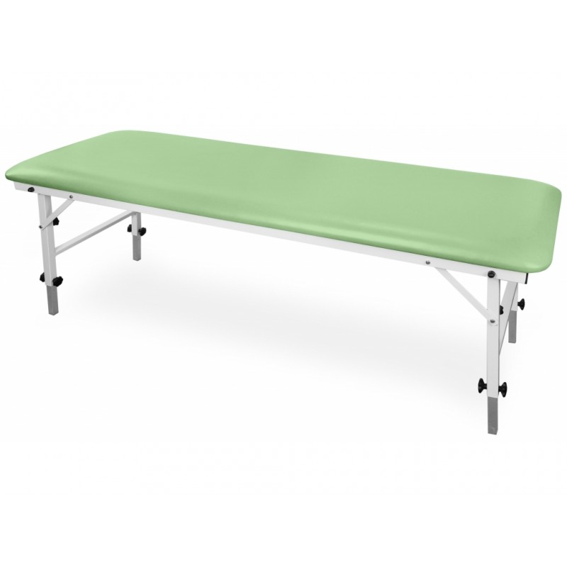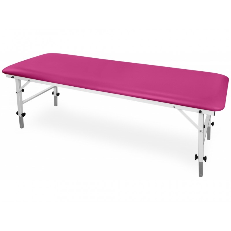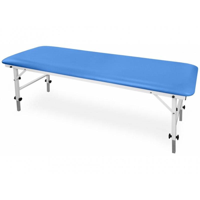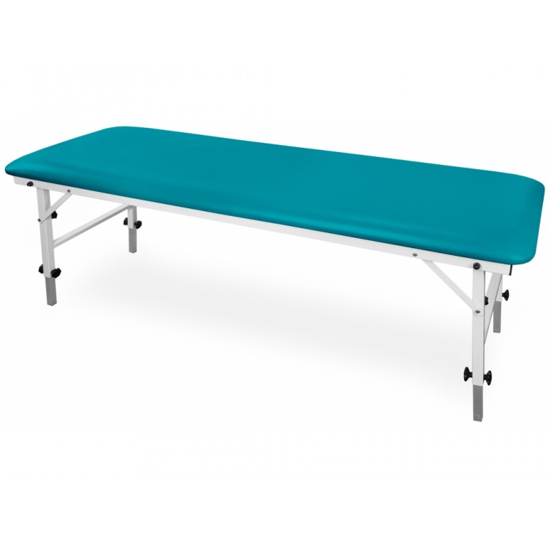 Kozetka MONA posiada prostą i stabilną konstrukcję, wykonaną ze stali pokrytej farbą proszkową. Blat obszyty jest materiałem skóropodobnym. Owalna linia na brzegach kozetki nadaje jej eleganckiego wyglądu. Nogi w kozetce można złożyć lub rozłożyć, co ułatwia transport. Dostępna w wielu kolorach.