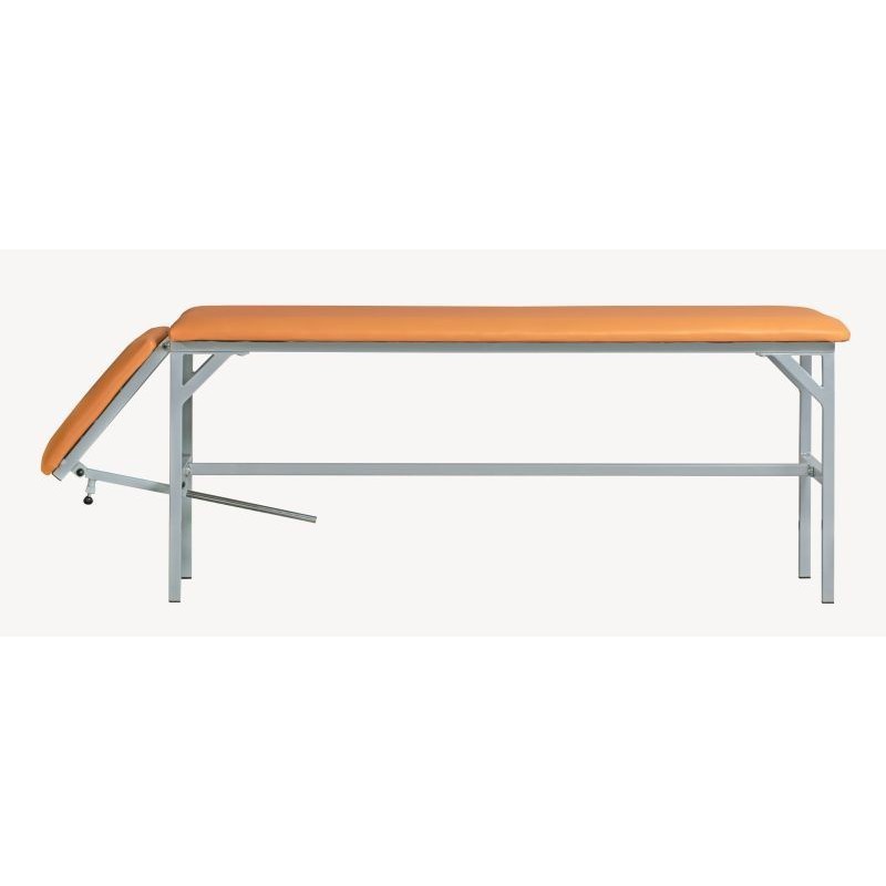 Kozetka lekarska KZ wykonana z malowanych proszkowo stalowych profili. Tapicerka składa się z dwóch części oraz posiada regulowany zagłówek.