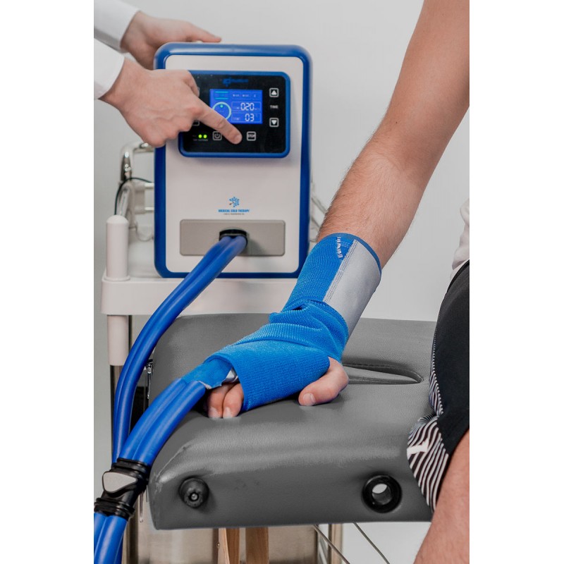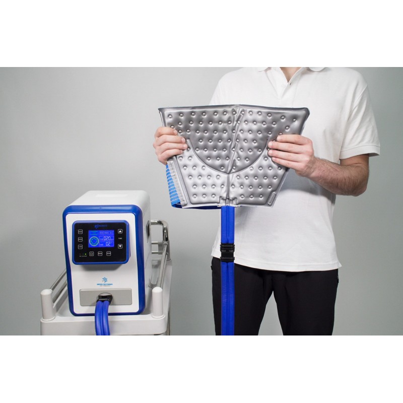 Kriokompresja jest Urządzeniem łączącym zimno lecznictwo i kompresję w zintegrowanym systemem. Składa się z przenośnej jednostki sterującej oraz serii ergonomicznych mankietów.