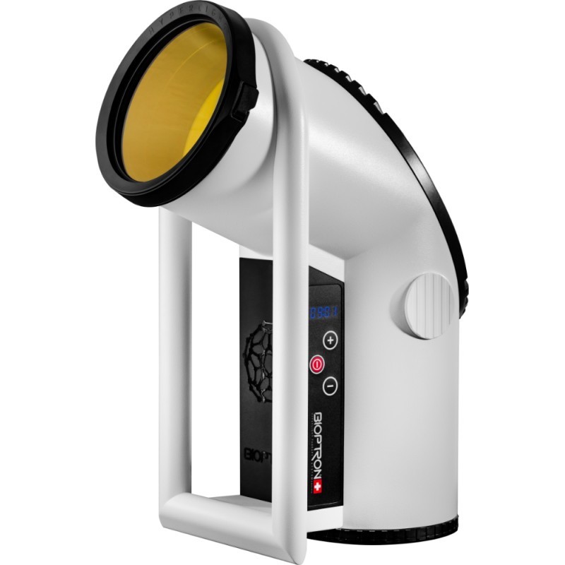 Naświetlaj BIOPTRONEM chore miejsca 5-10 minut dwa razy dziennie, aby przyspieszyć leczenie. BIOPTRON 2 jest przeznaczony głównie do profesjonalnego stosowania dzięki większej 15 cm średnicy filtra.