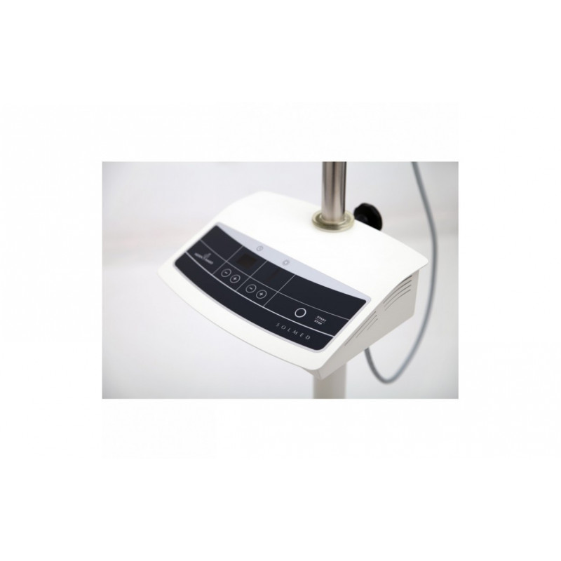 Lampa do naświetlań Solmed I UNO na regulowanym statywie to nowoczesna lampa posiadająca elektroniczny panel sterowania, regulację mocy promiennika, regulację długości trwania zabiegu oraz programowanie sekwencji zabiegowych. Dostępny jest również szeroki wachlarz kolorowych filtrów.
