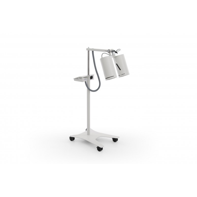 Lampa do naświetlań Solmed I DUO na regulowanym statywie to nowoczesna lampa posiadająca elektroniczny panel sterowania, regulację mocy promiennika, regulację długości trwania zabiegu oraz programowanie sekwencji zabiegowych. Dostępny jest również szeroki wachlarz kolorowych filtrów.