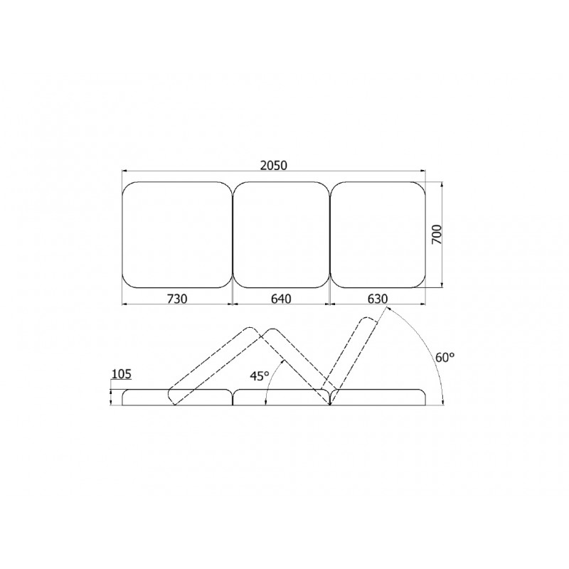 • Regulacja kąta blatu części środkowej: od 0 ° do +45 °