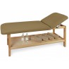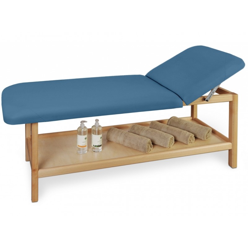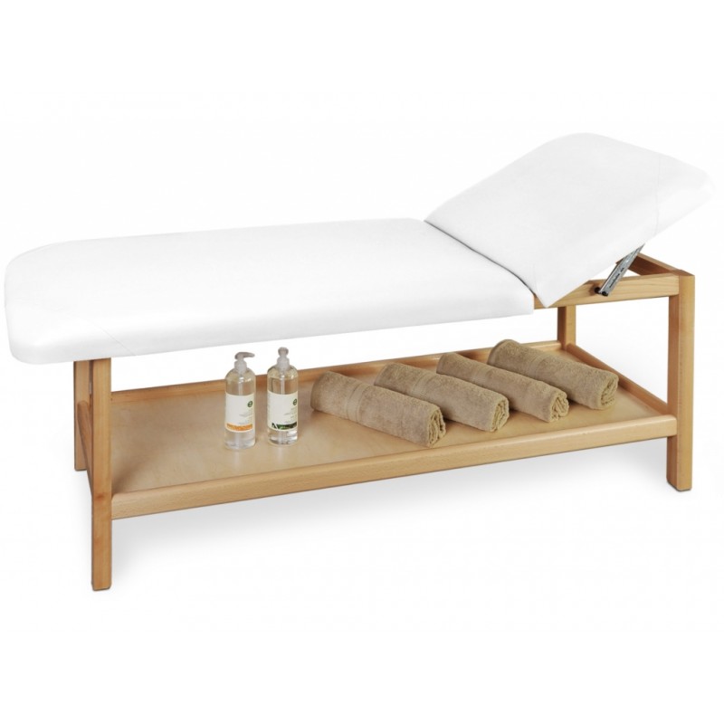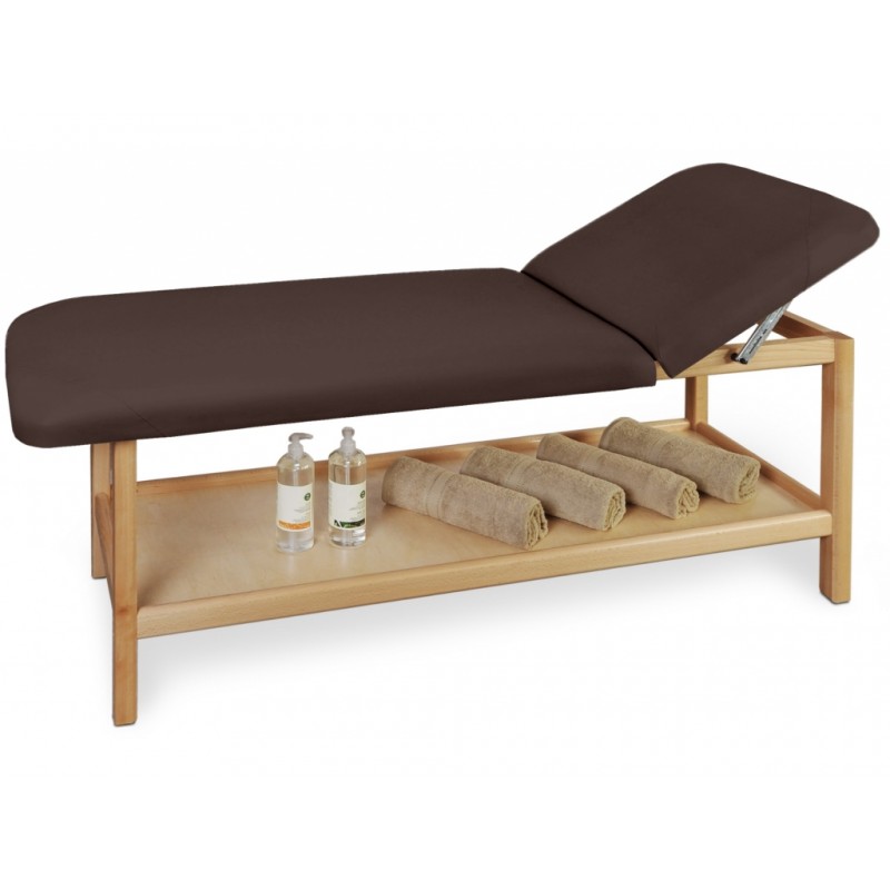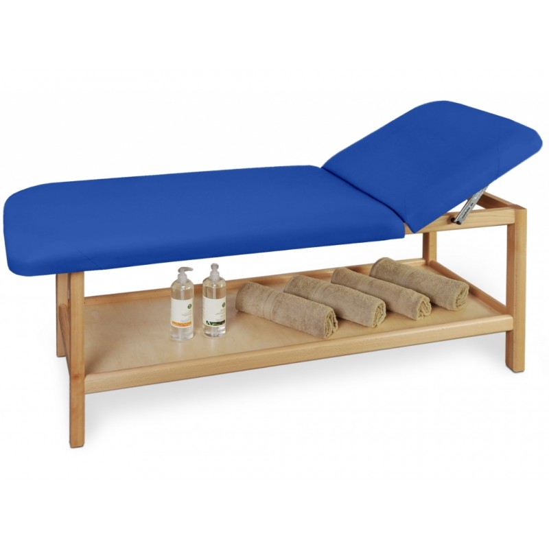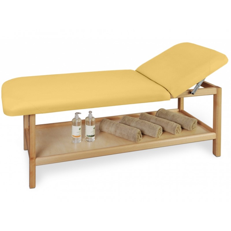 Leżanka HERA posiada stabilną, drewnianą konstrukcję i materac wykonany z wysokiej jakości materiału skóropodobnego lub winylowego. Dzięki swojemu eleganckiemu wyglądowi, nadaje niepowtarzalny wystrój i ciepło placówkom medycznym i gabinetom kosmetycznym. Dodatkowo do przechowywania materiałów potrzebnych przy wykonywaniu fizykoterapii czy też masaży służy zamocowana pod leżyskiem półka. Leżankę możemy regulować tak, by pacjent znalazł się w pozycji dostosowanej do wykonywanego zabiegu - leżącej, półeżącej lub siedzącej.