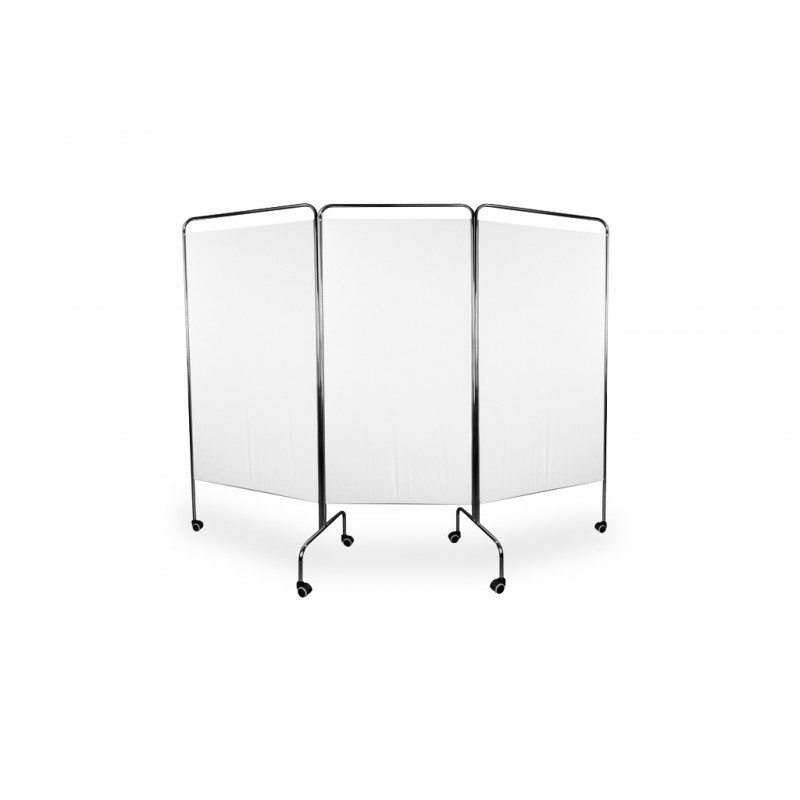 Chromowany parawan 3-częściowy to niezbędny element gabinetów kosmetycznych i lekarskich. Stabilność i trwałość dzięki doskonałemu wykonaniu z rurek chromowanych. Posiada zamocowane kółka - parawan możemy łatwo przestawić w dowolne miejsce. Ekran parawanu jest materiałem zmywalnym, można kupić także wersję ekranu z materiałem z elanobawełny.