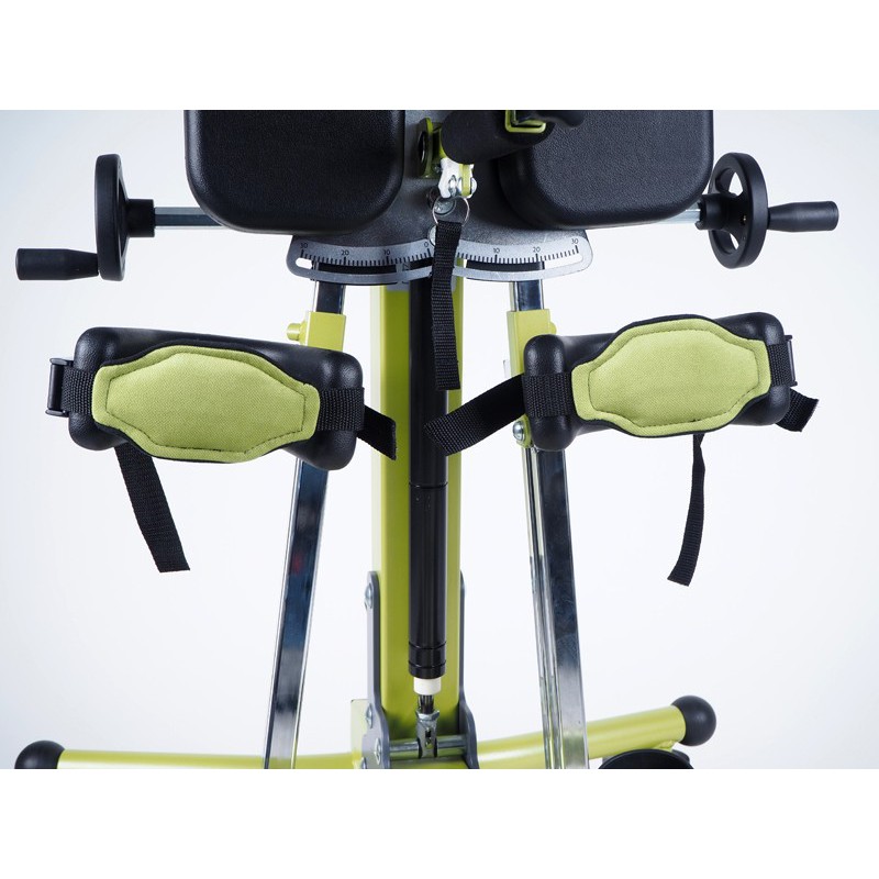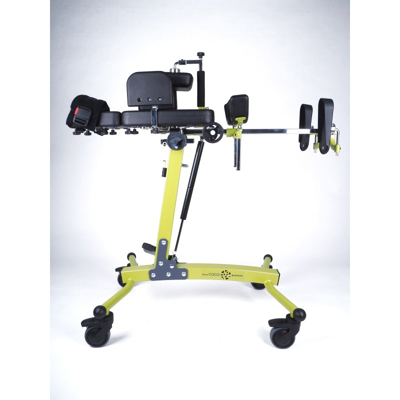 Pionizator COCO umożliwia pionizację pacjenta w pozycji przedniej i tylnej. Urządzenie umożliwia odwiedzenie kończyn dolnych w pionizacji z pomiarem kąta dla lewej i prawej nogi (0o – 30o). Funkcja ta umożliwia regulowanie nóg w płaszczyźnie czołowej tak, aby odpowiednio ustawić głowę kości udowej w panewce. W rezultacie uzyskujemy odwiedzenie gwarantujące poprawne ustawienie stawu biodrowego, a w konsekwencji zapobiegające dysplazji tego stawu.