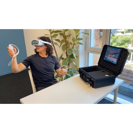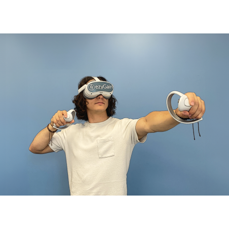 Zestaw EzyGain VR Kit to prosty i niedrogi system wirtualnej rzeczywistości do efektywnej i motywującej rehabilitacji. Zestaw składa się z gogli VR i dwoch kontrolerów. Urządzenie oferuje immersyjne środowiska umożliwiające wykonywanie ćwiczeń poznawczych, trening chodu, równowagi, kończyn górnych i małej motoryki.