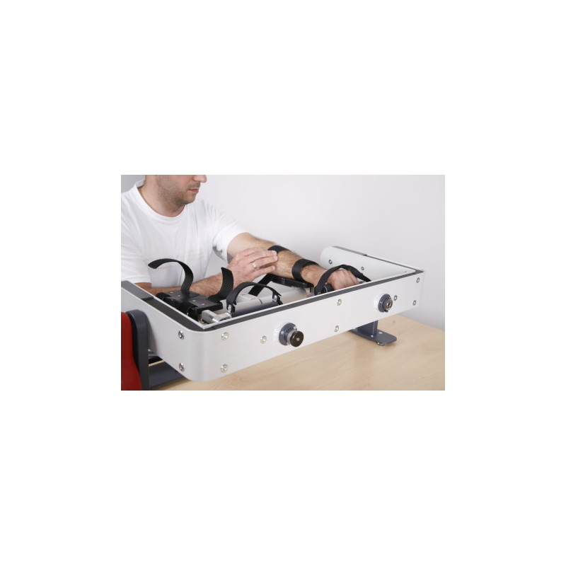 Z tym sprzętem możemy wykonywać trzy niezależne przemieszczenia w anatomicznych osiach stawów: zginanie i prostowanie, przewodzenie i odwodzenie, nawracanie i odwracanie przedramienia. Jedno urządzenie pozwala na kompleksową rehabilitację stawów nadgarstkowych.
