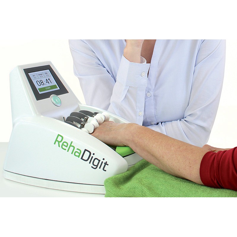 Aparat został klinicznie sprawdzony jako urządzenie medyczne. Dzięki uwagom użytkowników i specjalistów wprowadzono kolejne ulepszenia, np. poprawiając ergonomiczność podpórki pod dłoń. Możliwość dopasowania podpórki sprawia, że terapia może być przeprowadzana w przypadkach o łagodnym przebiegu, ale i u pacjentów o ciężkich symptomach. Wbudowany mechanizm zabezpieczający powoduje natychmiastowe zatrzymanie pracy urządzenia w razie skurczu spastycznego. RehaDigit to bezpieczeństwo i efektywna terapia