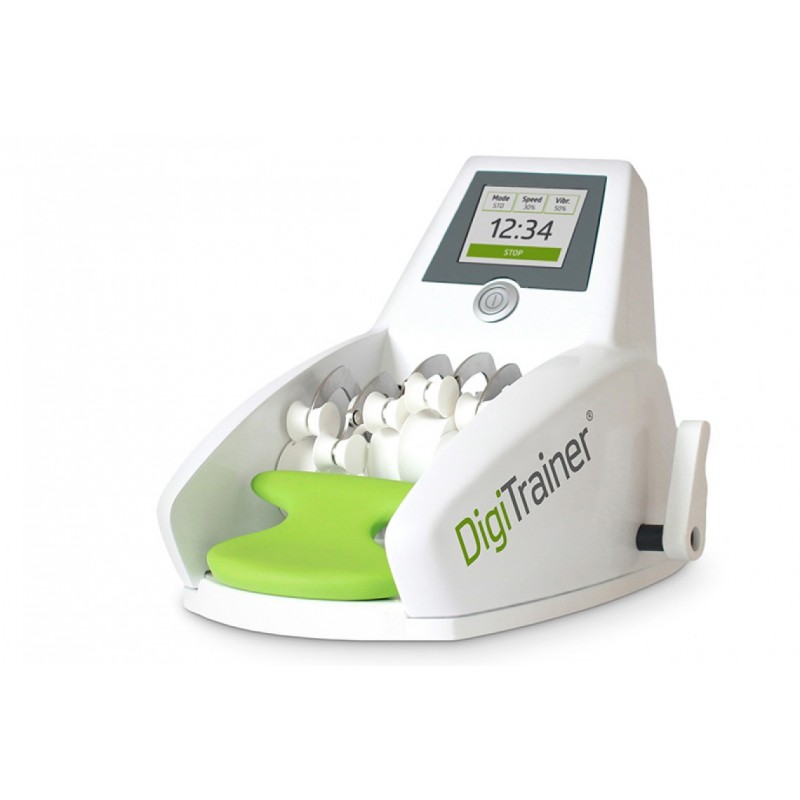 DigiTrainer mobilizuje dłoń o ograniczonym zakresie poruszania palcami, zapobiega skracaniu się mięśni i ścięgien. Jest to napędzane silnikiem urządzenie do terapii palców i dłoni. Celem terapii jest zmniejszenie motorycznych i sensorycznych ograniczeń. Różnorodne podpórki pod dłoń, rożne typy wibracji i rotacji dopasowują urządzenie do indywidualnych potrzeb pacjenta.