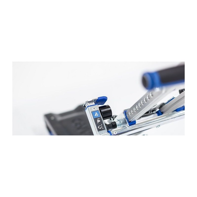 Ogromną zaletą schodołazu gąsienicowego LIFTKAR SANO jest możliwość jego szybkiego złożenia i rozłożenia na dwie części. Dzięki temu nie tylko można go łatwo i kompaktowo przechowywać, oszczędzając przy tym miejsce, ale także przewieźć autem w dowolne miejsce i używać wszędzie tam, gdzie jest to konieczne. Wystarczy zwolnić dźwignię, a schodołaz zostanie rozłożony na dwie przenośne części.