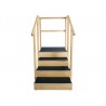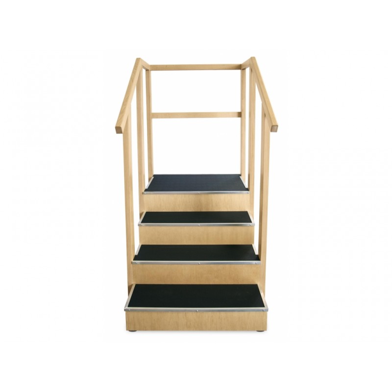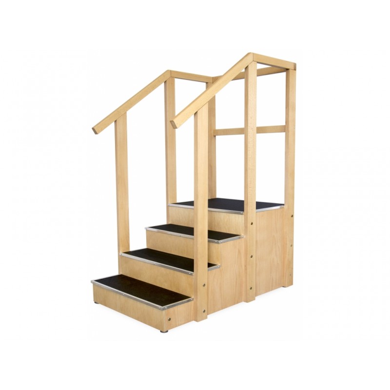Schody do nauki chodzenia służą do ćwiczeń i rehabilitacji osób, które utraciły zdolność chodzenia. Ćwiczenia przy pomocy schodów do nauki chodzenia korygują choroby i wady rozwojowe kończyn dolnych. Drewniana konstrukcja schodów osadzona jest na wytrzymałej stalowej konstrukcji. Stopnie schodów zostały pokryte gumową wykładziną antypoślizgową, co zapewnia bezpieczeństwo w trakcie wykonywania ćwiczeń. Poręcze schodów wykonane są z drewna bukowego.