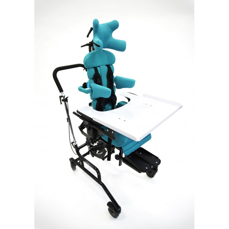 Zbudowany jest ze stabilnej ramy jezdnej HL21 z regulacją wysokości, kół (wielkość kół do wyboru), siedziska, tapicerki, pasów stabilizujących miednicę, podłokietników, kamizelki, pelot piersiowych, pelot biodrowych, pelot przykolanowych wraz z pasami odwodzącymi, rączki do prowadzenia, podnóżka wraz z pasami do stóp. Ruch platformy wspomagany jest sprężyną gazową. Całość pokryta jest tapicerką, którą można zdejmować do prania.