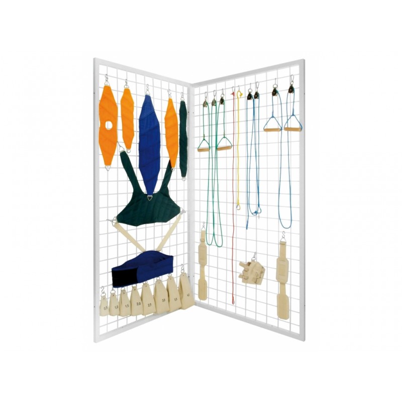 Osprzęt pełny do kabiny UGUL - Uniwersalny Gabinet Usprawnienia Leczniczego, to stanowisko do zabiegów rehabilitacyjnych. Pozwala na wykonanie kompleksowych ćwiczeń dzięki systemowi podwieszek.