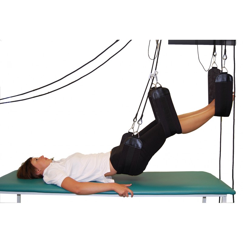 Urządzenie Sling Therapy do ćwiczeń w podwieszeniu - pełen zestaw. Ten sprzęt potrafi doskonale zastąpić kabinę UGUL. Producent to firma KINESIS. Urządzenie pomaga w leczeniu schorzeń narządu ruchu. Same ćwiczenia polegają na samodzielnym wykonywaniu ruchów w stawach, jednak poprzez odciążenie ćwiczonego odcinka ciała. Najczęściej stosowany w reumatologii, ortopedii, neurologii.