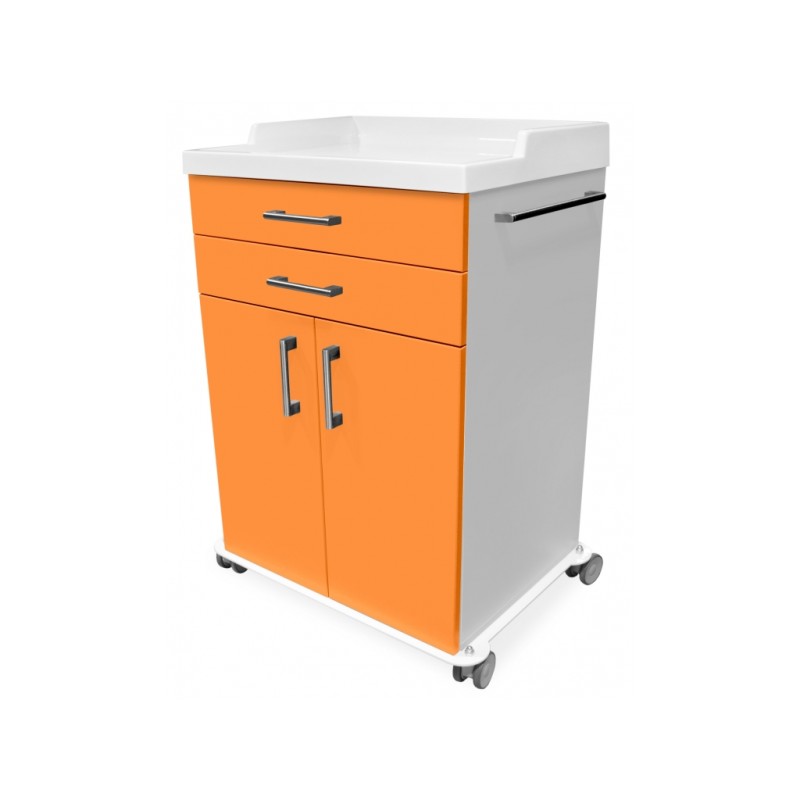 Wózek wielofunkcyjny JWW-A 2 przeznaczony jest do przechowywania oraz transportu materiałów oraz urządzeń używanych na oddziałach szpitalnych. Taca wózka wykonana jest z laminatu poliestrowo-szklanego. Korpus wózka wykonany jest z płyty wiórowej zaś fronty z płyty MDF. Całość pokryta jest okleiną PCV. Wózek osadzony jest na stalowej podstawie wyposażanej w kółka jezdne z hamulcem. W środku szafki znajduje się wysuwana półka, na której umieszczone są pojemniki na odpady. Szuflady wózka wyłożone są matą antypoślizgową.