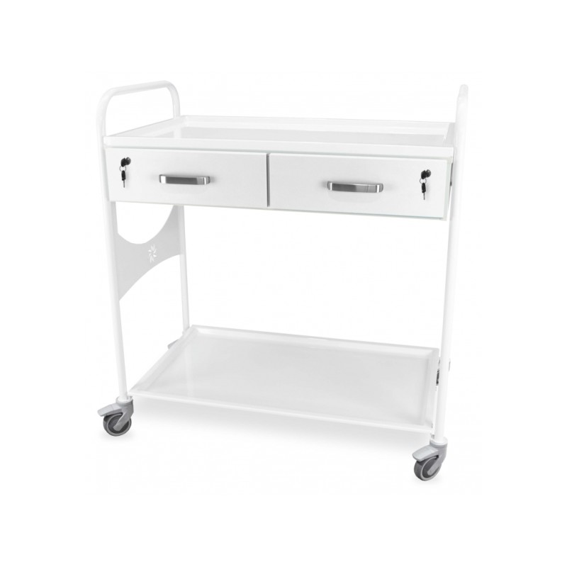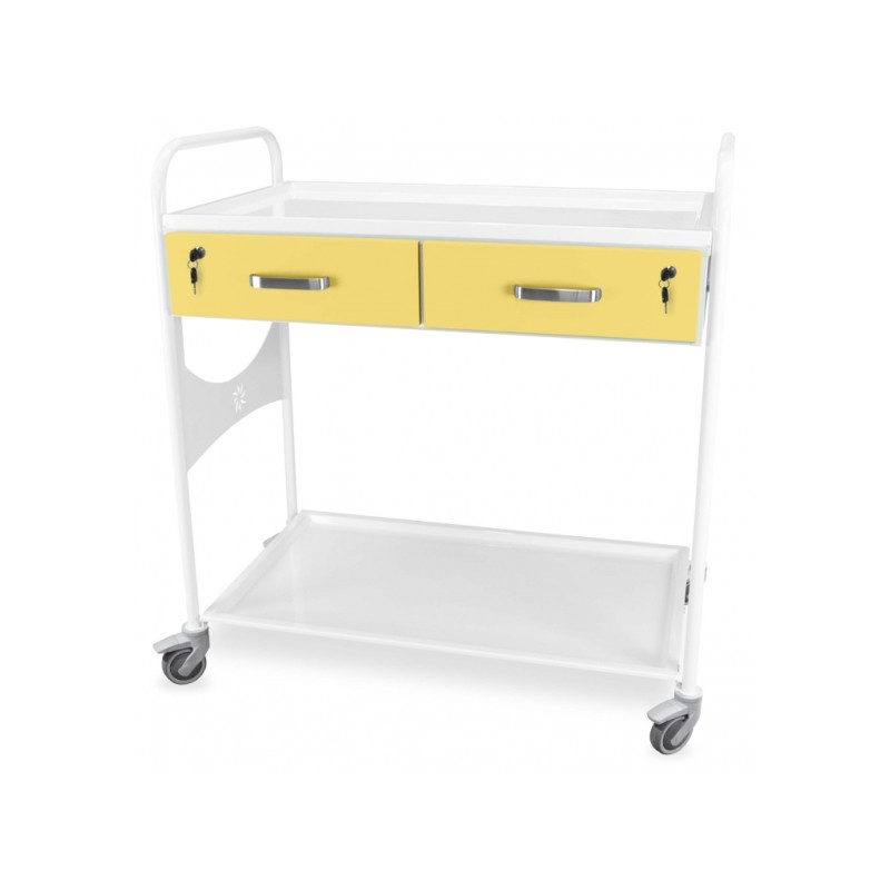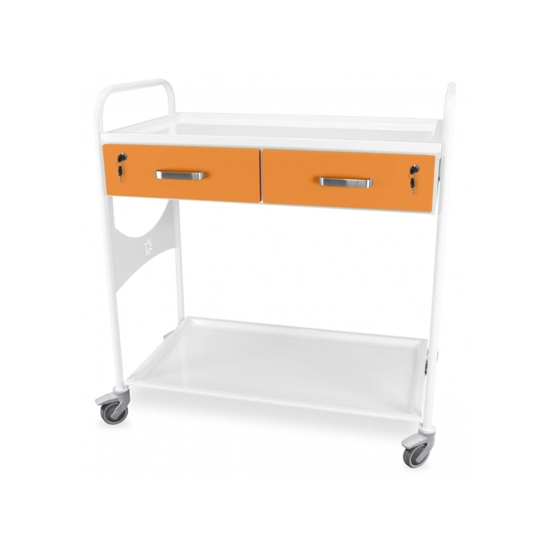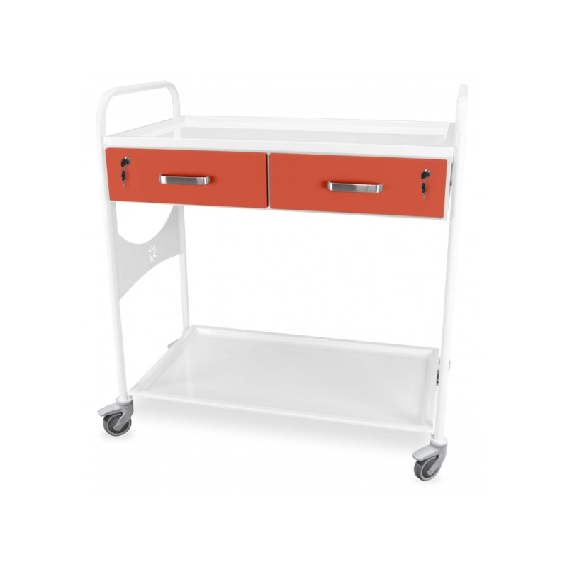 Tace wózka wykonane są ze stali pokrytej farbą proszkową odporną na zarysowania. Korpus wózka wykonany jest z płyty wiórowej zaś fronty z płyty MDF. Całość pokryta jest okleiną PCV. Wózek osadzony jest na stalowej podstawie wyposażanej w kółka jezdne z hamulcem. Szuflady wózka wyłożone są matą antypoślizgową. W standardzie górne szuflady wyposażone są w zamek. System szynowy znajdujący się po obu stronach wózka umożliwia zamontowanie dodatkowego wyposażenia na jednej z czterech szyn.